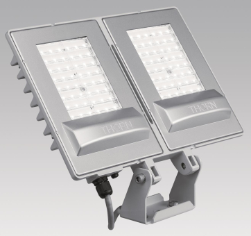 Ein einfaches, ultra leichtes Midi-LED-Allzweckflutlicht, mit asymmetrischer Optik. Inklusive: nicht dimmbares Betriebsgerät. Schutzklasse I, IP66, Schlagfestigkeit: IK07. Gehäuse: AluminiumDruckguss, pulverbeschichtet in THORN HELLGRAU, strukturiert (ähnlich RAL 9006 / AKZO 150). Bügel: Aluminium. Blende: Polycarbonat (PC), außen pulverbeschichtet, pulverbeschichtet in THORN HELLGRAU, strukturiert (ähnlich RAL 9006 / AKZO 150). Vorverdrahtet mit 60-cm-Kabel. Bügelbefestigung an einem M-10 und/oder zwei M8-Besfetigungspunkten. Bügel ist wendbar für verschiedene Montagepositionen. Inklusive LED-Modul mit 3000K Abmessungen: 368 x 236 x 48 mm Leuchten Leistung: 90 W Leuchten Lichtstrom: 8600 lm Leuchten Lichtausbeute: 96 lm/W Gewicht: 3 kg