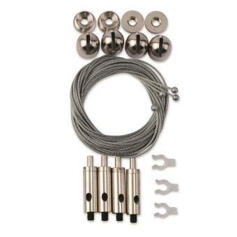 Seilabhängung zur Befestigung der Decken-Heizelemente der Baureihe VH mit einer Länge von rd. 5000mm. Das Gewicht beträgt rd. 0,2 kg. Ein Set besteht jeweils aus 4 x Basisteil für die Deckenmontage der Infrarotheizung, 4 x Befestigungsteil für das Seil, 4 x Seil und 4 x der Seilbefestigung mit seitlicher Seilausleitung zur einfachen Höhenverstellung. Die Deckenhalter am Gerätedeckel der Vitramo-Infrarotheizelemente der Baureihe VH sind serienmäßig mit vier M5-Gewinden ausgestattet, um die Seile am Deckenhalter befestigen zu können. Vitramo ist führender Hersteller von Infrarotheizelementen für die Wand- und Deckenmontage und produziert ausschließlich made in germany am Standort Tauberbischofsheim in Baden-Württemberg.