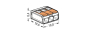 Verbindungsklemmen für alle Leiterarten, jetzt noch kleiner und handlicher. Verfügbar als 2-, 3- und 5-Leiterklemmen, 0,2-4 mm2 "e+m"/0,14-4 mm2 "f", Nennspannung 450 V/4 kV/2, Nennstrom 32 A, Farbe: transparent, mit Betätigungshebeln