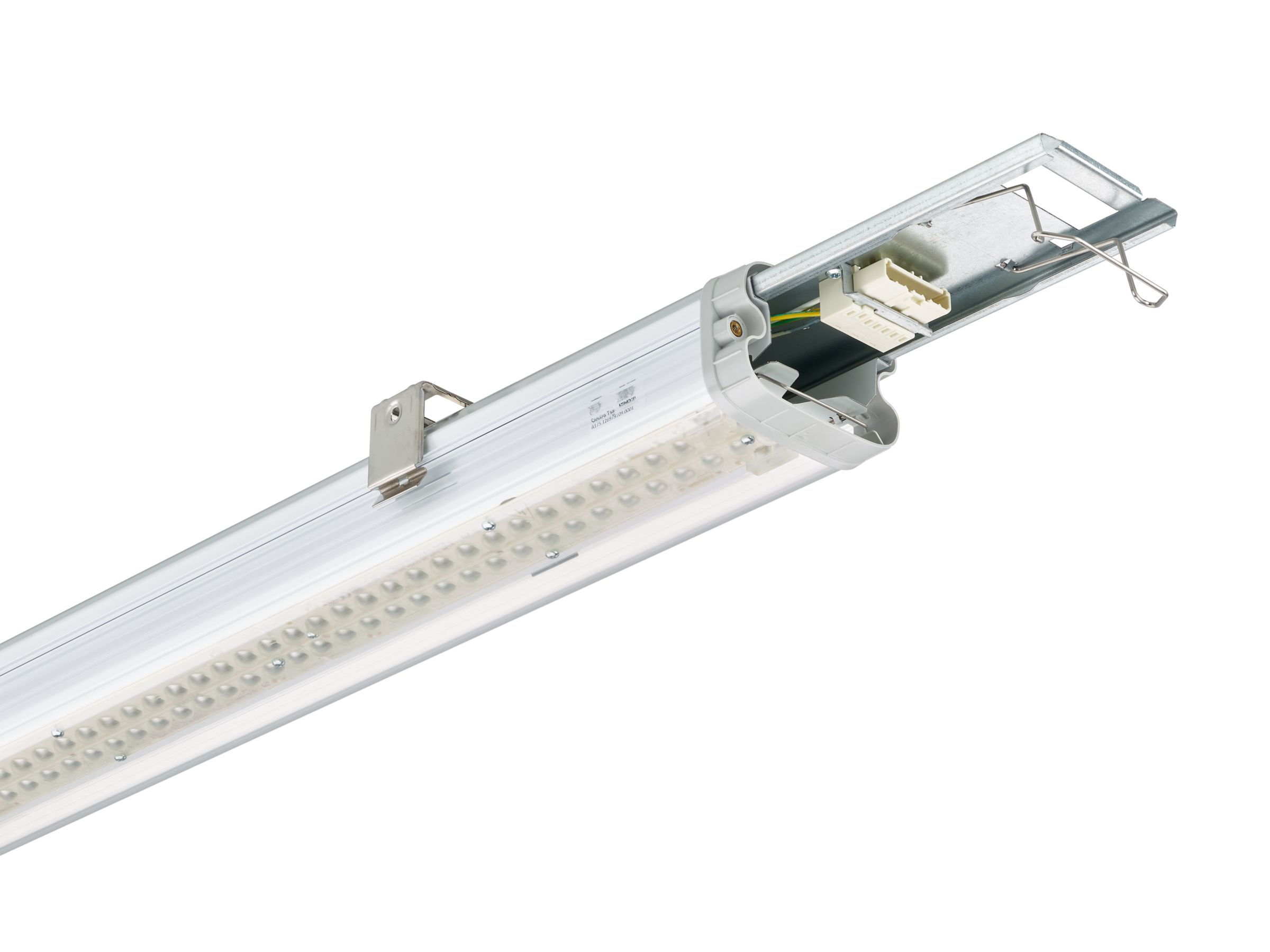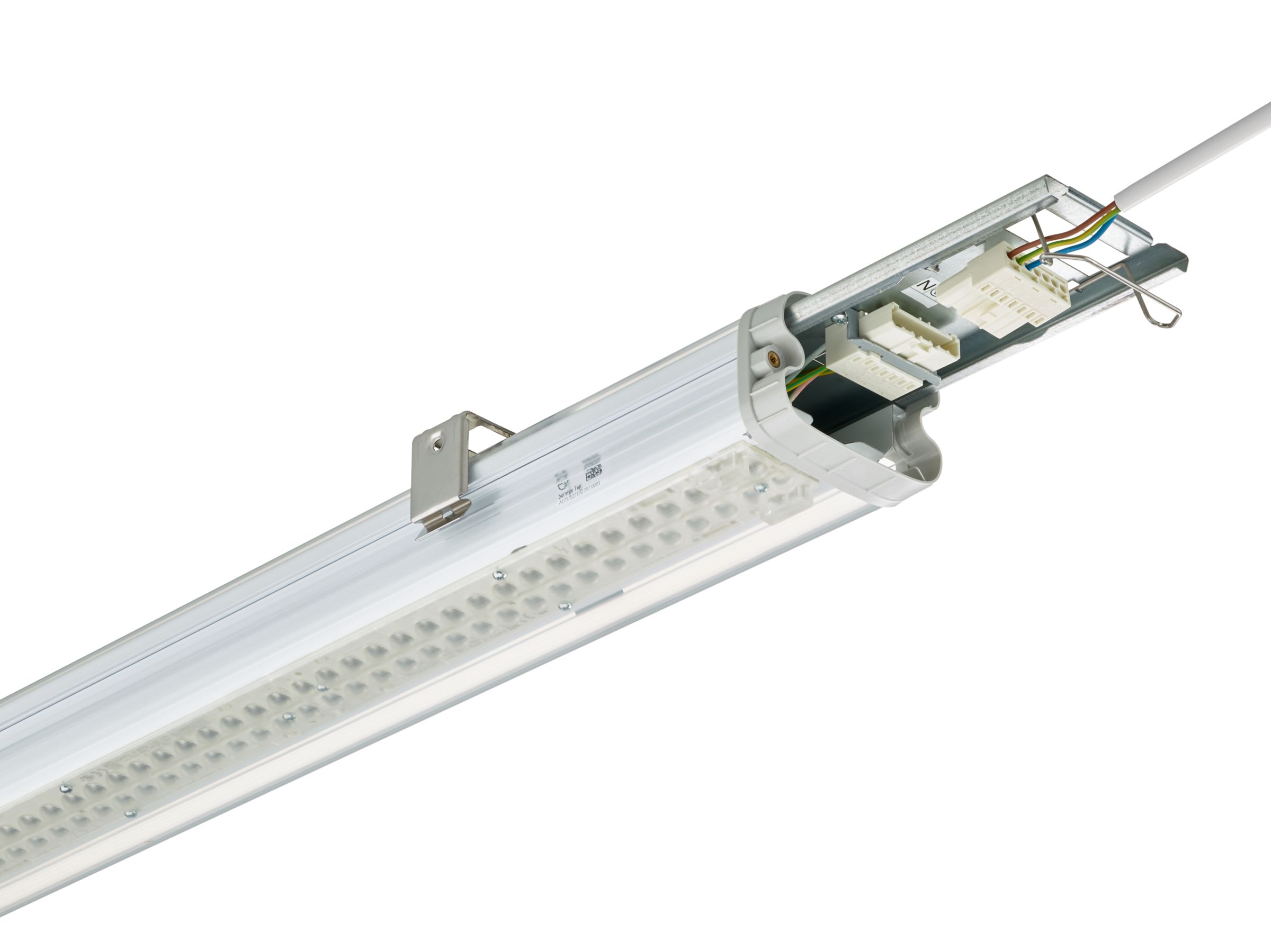 DALI-regelbar (PSD), mit Schnellsteckanschluss (WA7), ohne oder mit 3-phasiger Durchgangsverdrahtung (TW3), Länge: 700 mm (L700) oder 1200 mm (L1200).