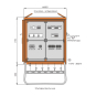 WALTHER BeleuchtungsverteilerschrankAnschlussleistung: 35kVAnach IEC61439-4Gehäuse (H06BE) aus elektrolytisch-verzinktem Stahlblech mit schwermetallfreier Kunststoff-Lackierung Farbe: RAL 2004 -reinorange- mit Einfachtür, Federfallriegel für Vorhängeschloss und Griffmulde mit Kranösen und seitlichen Tragegriffen inkl. feuerverzinktem Untergestell mit Ösen für Erdnägel Einbauten bis einschließlich RCD-Schutzschalter im IsolierstoffgehäuseSchutzart: IP 44Größe ca.: 739 x 669 x 360mm / H-B-T + Untergestell-Höhe ca.: 323mmAnschluss:1 Lasttrennschalter mit Sicherungen 3P 50A D02 mit Zugangsklemme 1 x 5 x 35qmmAbgang / Absicherung:1 Sicherungselement 1P 6A D01 -als Steuersicherung- 1 Dämmerungsschalter mit sep. Lichtfänger 1 digitale Zeitschaltuhr 2 RCD-Schutzschalter 4P 40A/30mA2 H-O-A-Schalter2 Schütze 3P 20A 2 Leitungsschutzschalter (MCB) 3P 16A -C- mit je 1 Abgangsklemme 5 x 10qmm 1 RCD-Schutzschalter 4P 40A/30mA1 H-O-A-Schalter1 Schütz 3P 20A 3 Leitungsschutzschalter (MCB) 1P 16A -B- mit je 1 Abgangsklemme 3 x 4qmm
