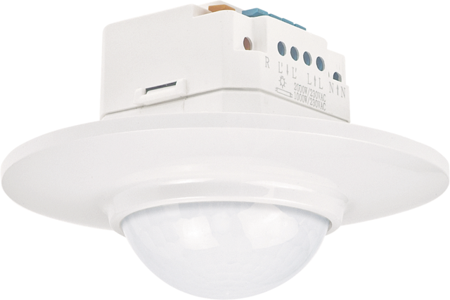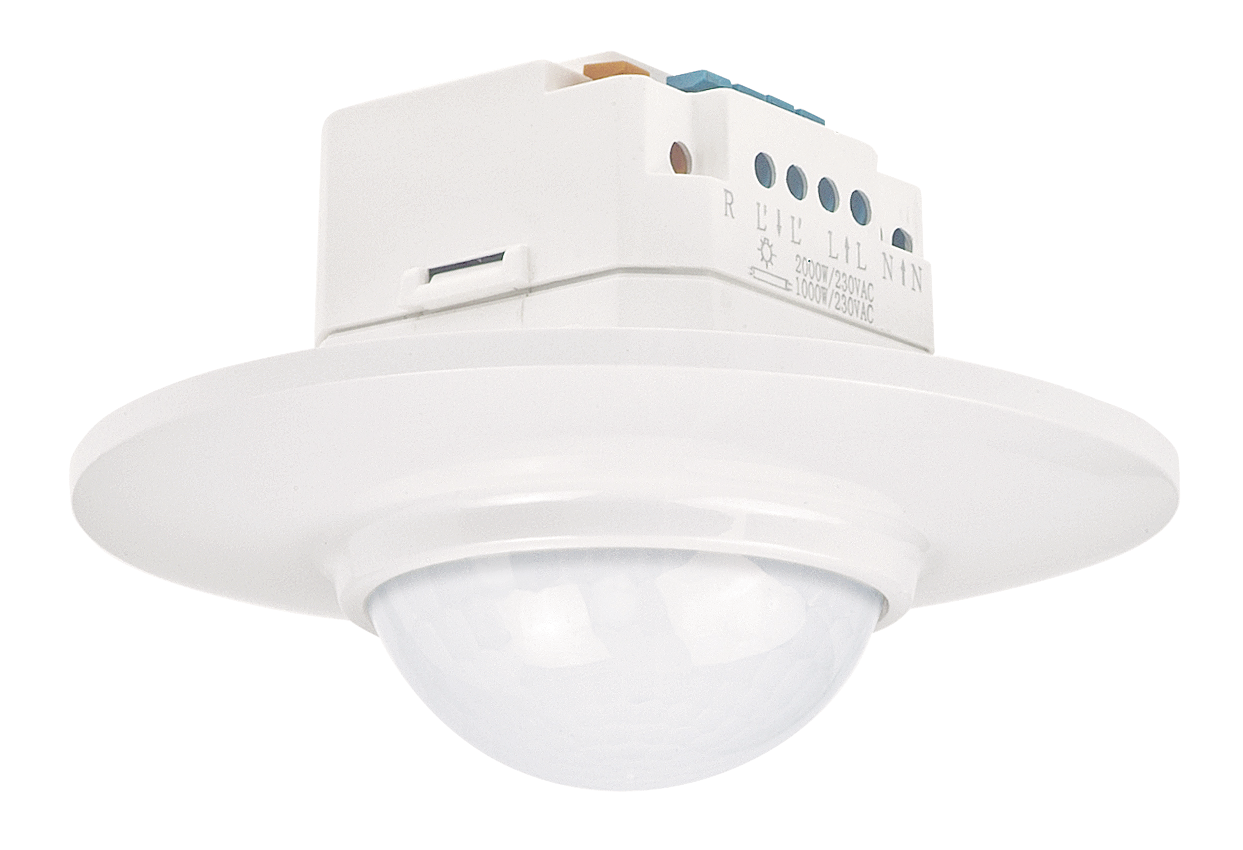 Bewegungsmelder 360° mit bis zu ø 16 m Erfassungsbereich für UP Deckenmontage, 1 Kanal. Bewegungsmelder mit starker Erfassung, universell einsetzbar dank vielseitigem Zubehör, externer Schalter (ON). Ideal für Durchgangsbereiche. Farbausführung: weiß