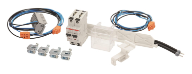 Absicherungspaket TBEHZ. Besteht aus: 2x LS-Schalter B10A 1-polig 25kA, 2x SSK16, Steuerleitungsklemme 7-polig, kurzschlussfeste Leitung 4 mm², L-N Verdr. bis VNB + APZ-Raum, Kunststoffhutschiene.